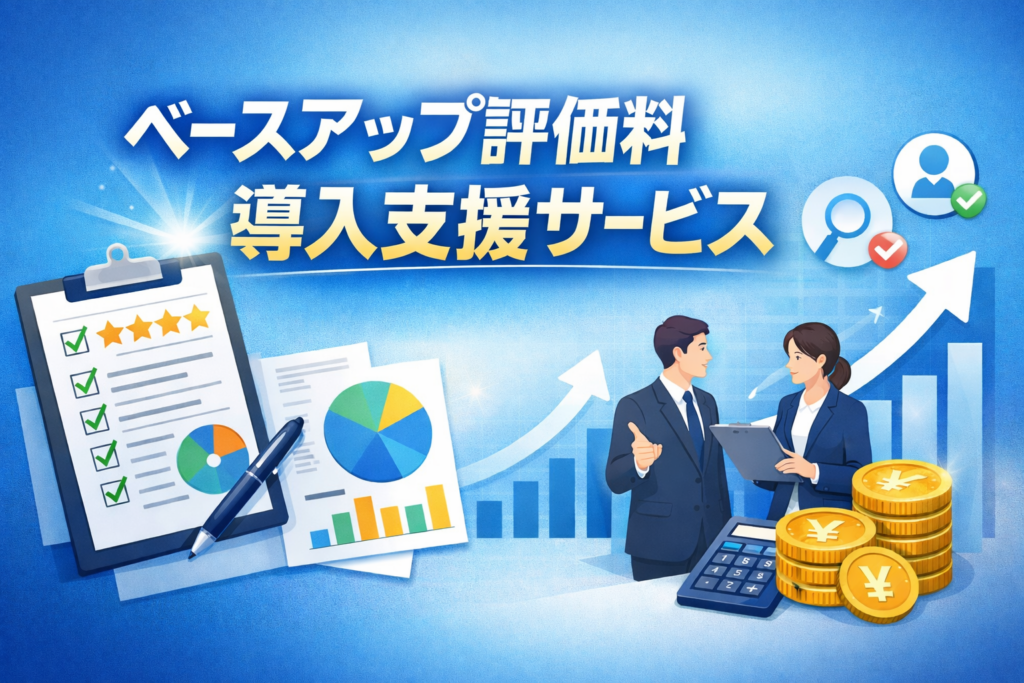 当事務所では、ベースアップ評価料の導入支援を入口に、賃金規程の見直しはもちろん、給与計算の妥当性、勤怠管理を確認し、安心して継続できる仕組みづくりをサポートします。